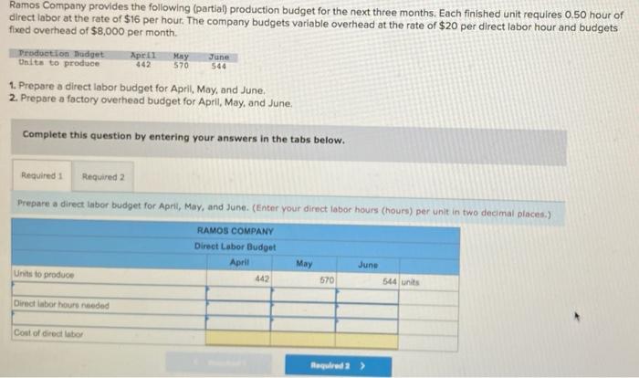 Welcome to RAMOS CONCRETE. Ramos Company has the following unit costs. Ramos Company has the following unit costs.
